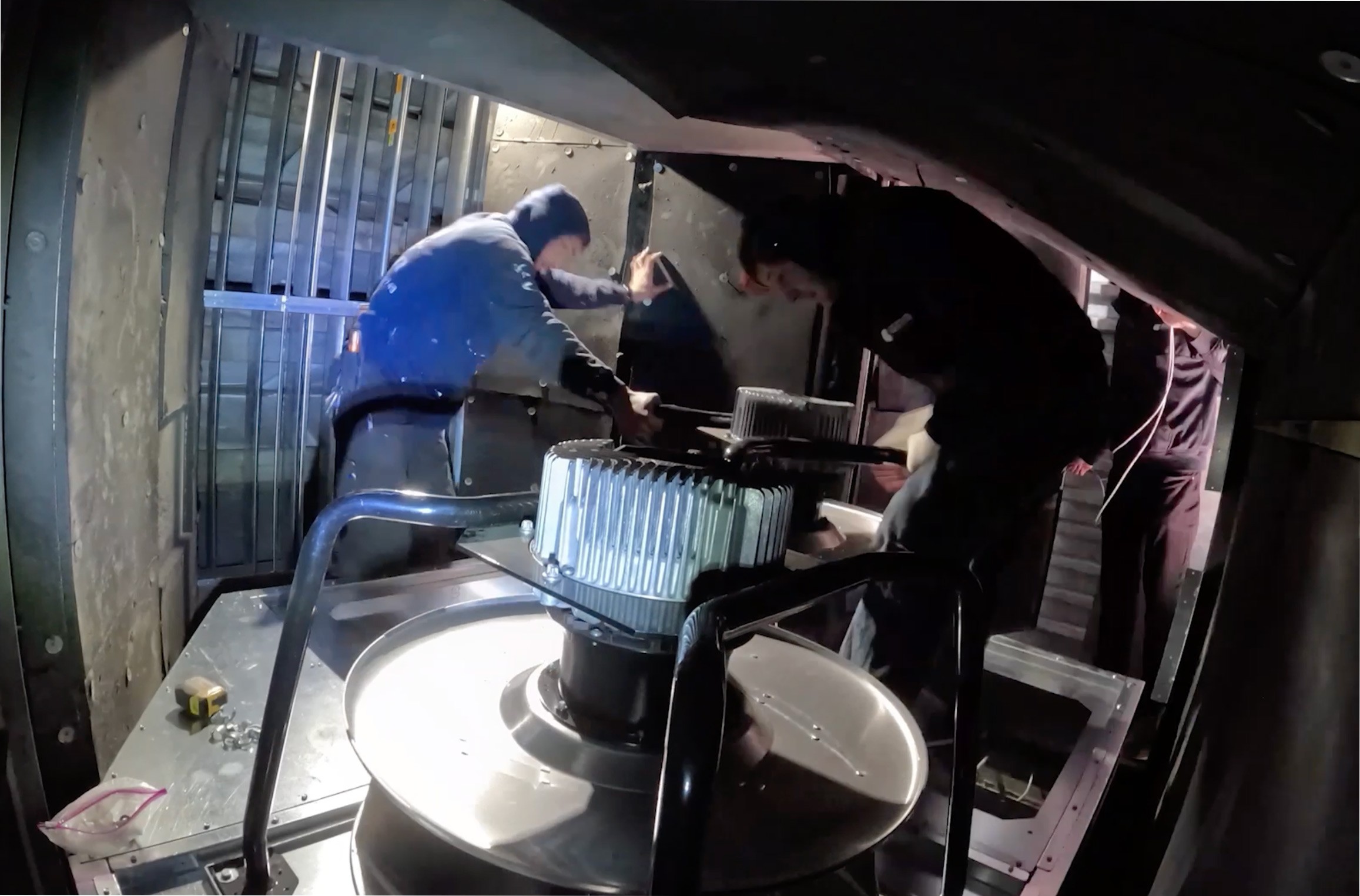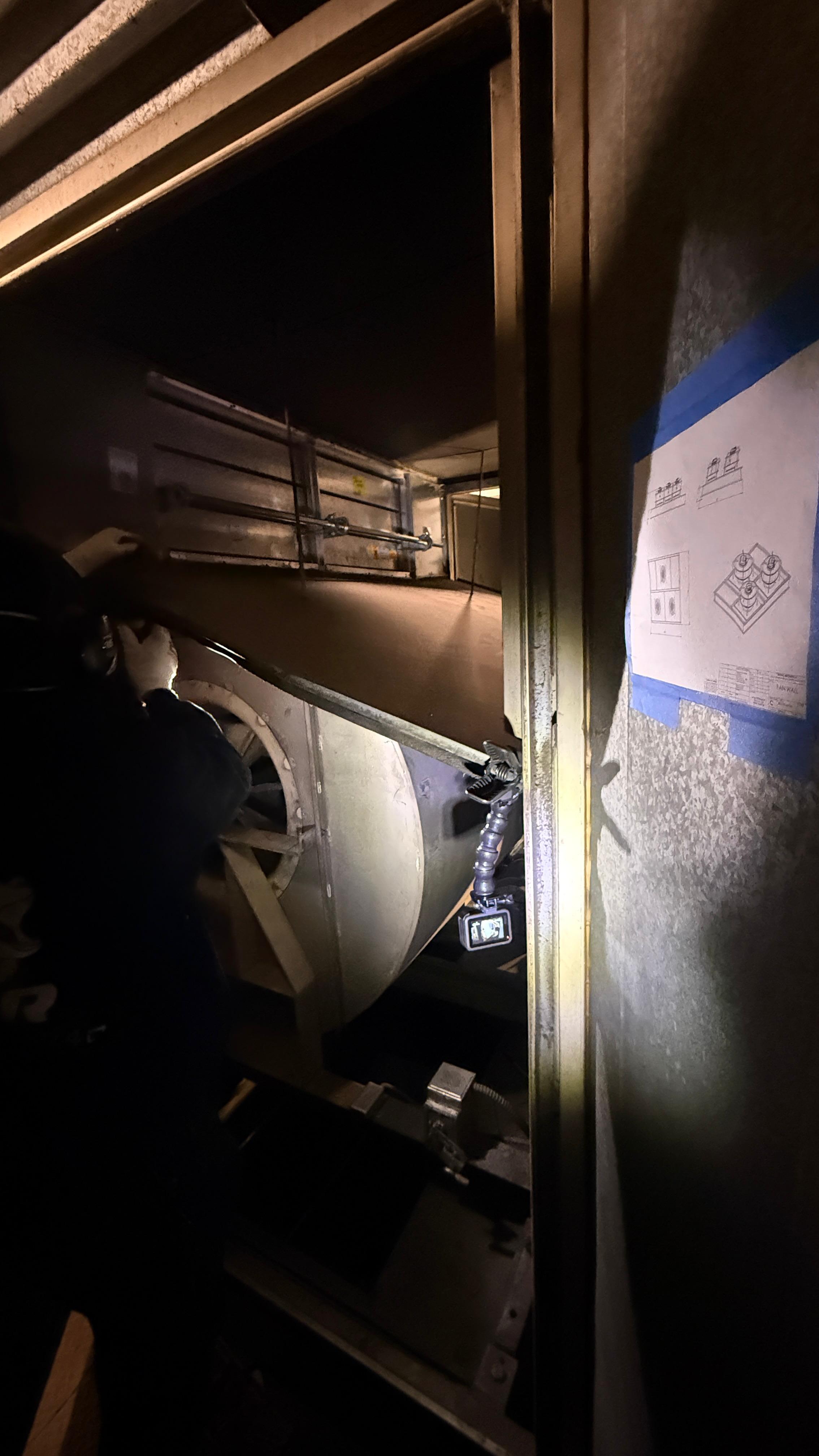 Execution began with review of the existing blower section and operating conditions, followed by removal of the original blower assembly and preparation of the section for the new fan wall configuration.